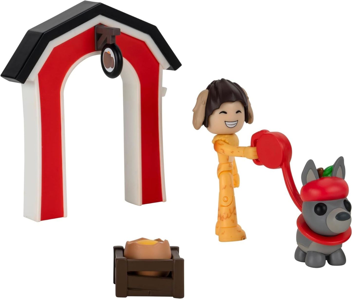 FRIENDS PACK: Come to the Nursery and buy a cracked egg from NPC Doug. CREATE YOUR OWN: Figure pieces are removable and interchangeable throughout the line; mix and match. EXCLUSIVE VIRTUAL CODE: To get your Adopt Me UGC virtual item, redeem the included code; one code per pack. ASK BOARD: To see your tasks, scratch off the three listed on the board, just like in the game. MORE TO COLLECT: Expand your Adopt Me collection with Mystery Pets, Plush, Playsets, Friend Packs, and more.