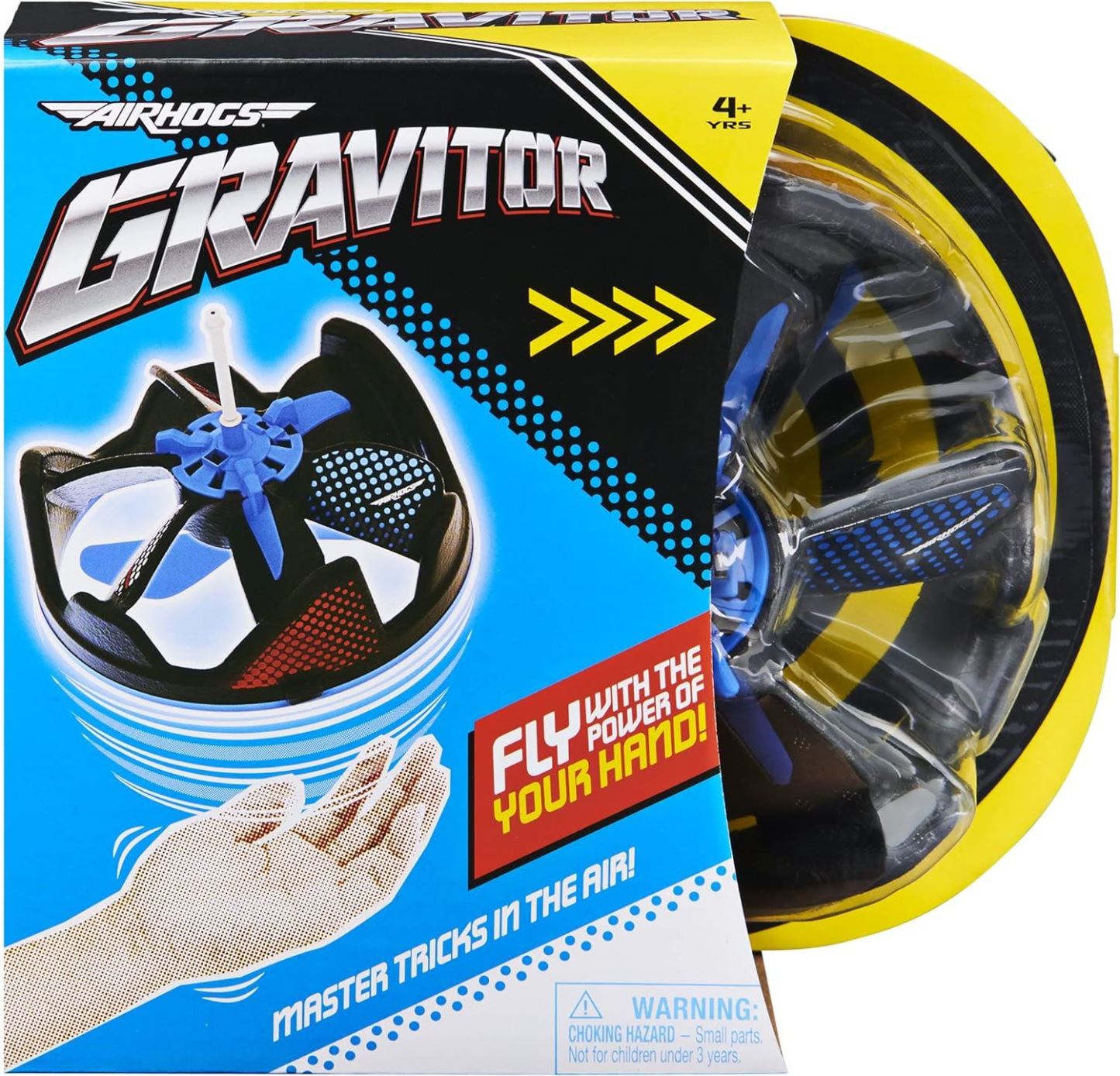 Air Hogs Gravitor takes on zero gravity flight movements with the power of your hands! Unlike remote control toys, Gravitor can fly without a remote! The Air Hogs Gravitor senses what�s below and hovers above it! Use your hands or body to control Gravitor and master countless tricks, including the shoulder slide, kick flip, boomerang and more. Use the trick stick for tossing and catching and more ways to play with friends! With durable and lightweight construction, the Gravitor is a great indoor drone � bounce and rebound without damaging walls or furniture. The Air Hogs Gravitor is a cool toy drone that kids love. Light enough to float on air, tough enough to bounce off objects and stay airborne! Bump, crash, and keep on playing with Air Hogs Gravitor!