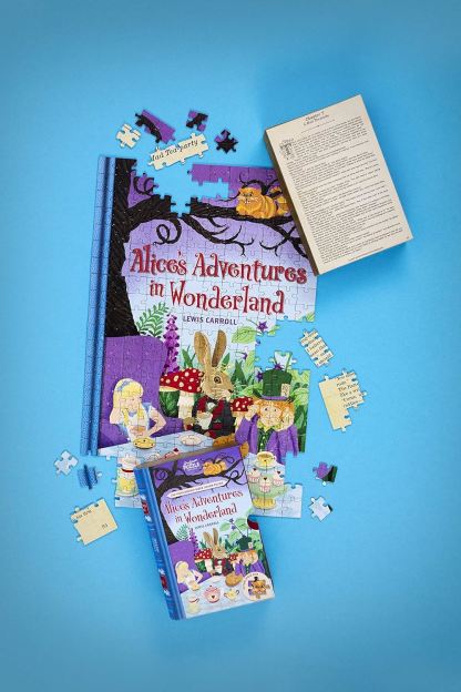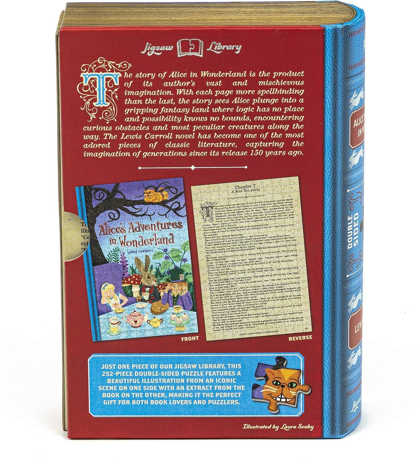 Alice in Wonderland Jigsaw Puzzle - 252 piece double-sided Jigsaw by Professor Puzzle. This unique Alice in Wonderland themed jigsaw is the perfect gift any puzzle or Alice in Wonderland fanatic. One title from our Jigsaw library. Unique Jigsaws featuring beautiful illustrations of an iconic scene on one side with an extract from the book on the other. Part of Professor Puzzles' unique Jigsaw Puzzle collection.