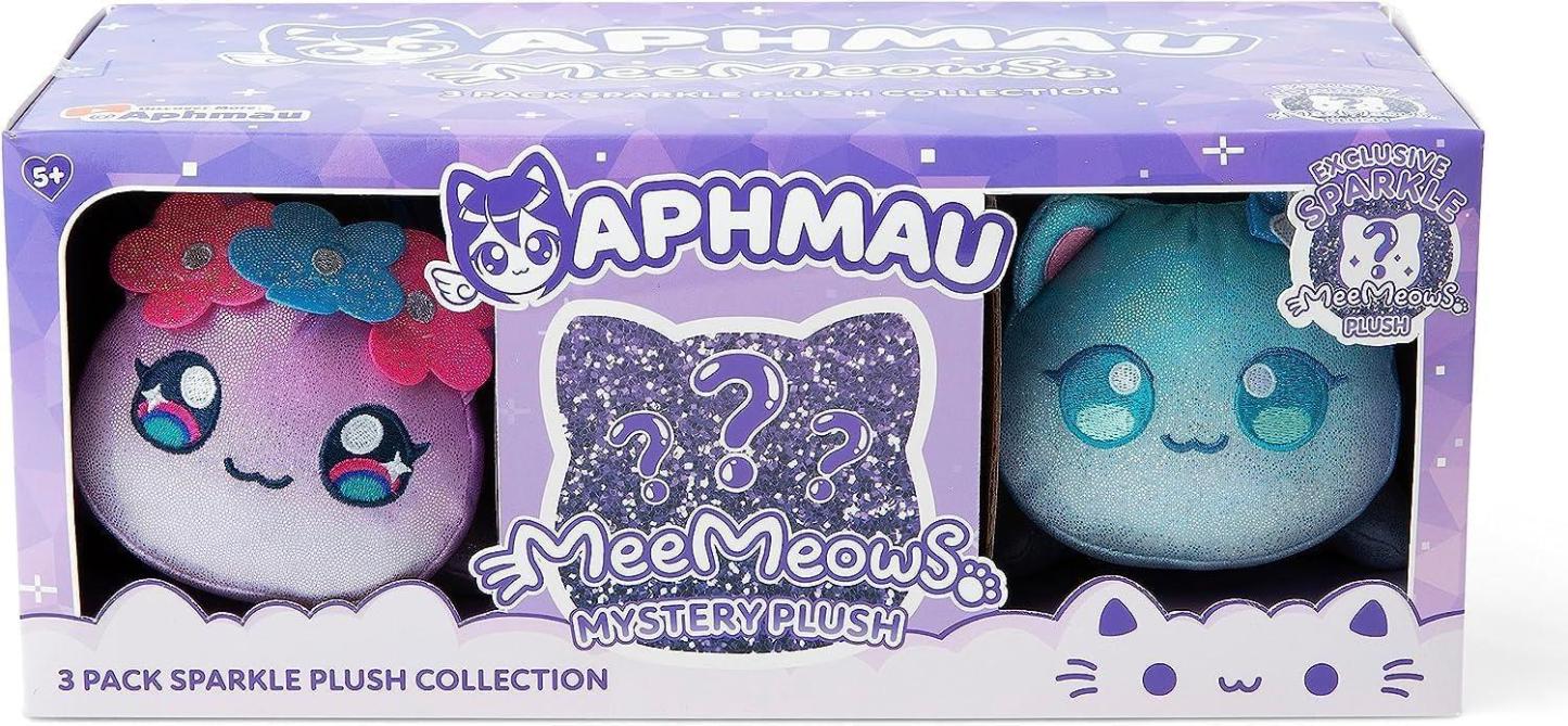 Contains three adorable 6� Aphmau plush toys. Opening a MeeMeows mystery box is a thrilling experience every time! Cuddled between Sparkle Fairy Cat and Sparkle Mermaid Cat is a surprise box containing one mystery Sparkle Aphmau plushie � and you never know which one you�ll get. This collection is all about the sparkles! Now you can experience the Aphmau MeeMeows in all new shimmery and sparkly materials! These cute cat plushies make the most meow-velous cuddle companions with squishy bodies, signature happy faces and big, adorable eyes! A MeeMeows Mystery Plush is the purr-fect gift for Aphmau fans, collectable lovers, gamers, and cat lovers alike!