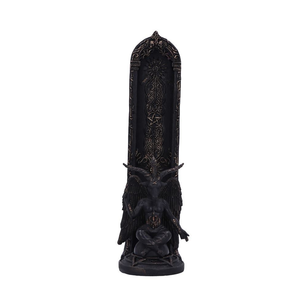 Resting in the centre of a pentagram, the globe of the earth acts as Baphomet's seat. Sitting cross-legged on top of the world, Baphomet sits, symbolizing the sum total of the universe. The back of the burner is decorated in symbology with gold detailing, and is perfect for burning your favourite incense sticks. Worshipped by occultists from Jacques de Molay's Templars to Alistair Crowley, Baphomet has long been a symbol of free-thinking heresy and forbidden knowledge. Cast in the finest resin before being expertly hand-painted, this Baphomet's Essence Incense Burner is ideal for any gothic or horror lover.