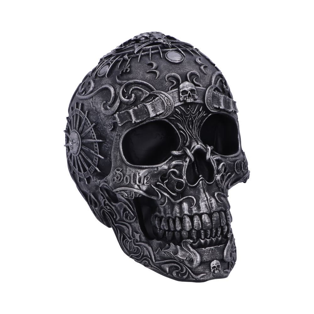 Dating back to the inquisition and torture of the Knights Templar, this skull has the words Solve and Coagula emblazoned onto its cheekbones. The skull is covered in detailed Baphomet symbols, but contrary to popular belief, the Baphomet is not a symbol of the satanic or the occult, but the embodiment of opposition and contrasting ideas. It is a symbol of balance in the universe and also a fountain of knowledge and intelligence. Cast in the finest resin before being expertly hand-painted, this Baphomet Worship Skull will make the perfect additon to any Gothic, Horror or Baphomet collection.