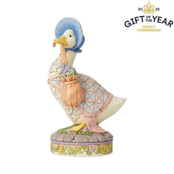Beatrix Potter Jemima Puddle-Duck wearing a shawl and a poke bonnet