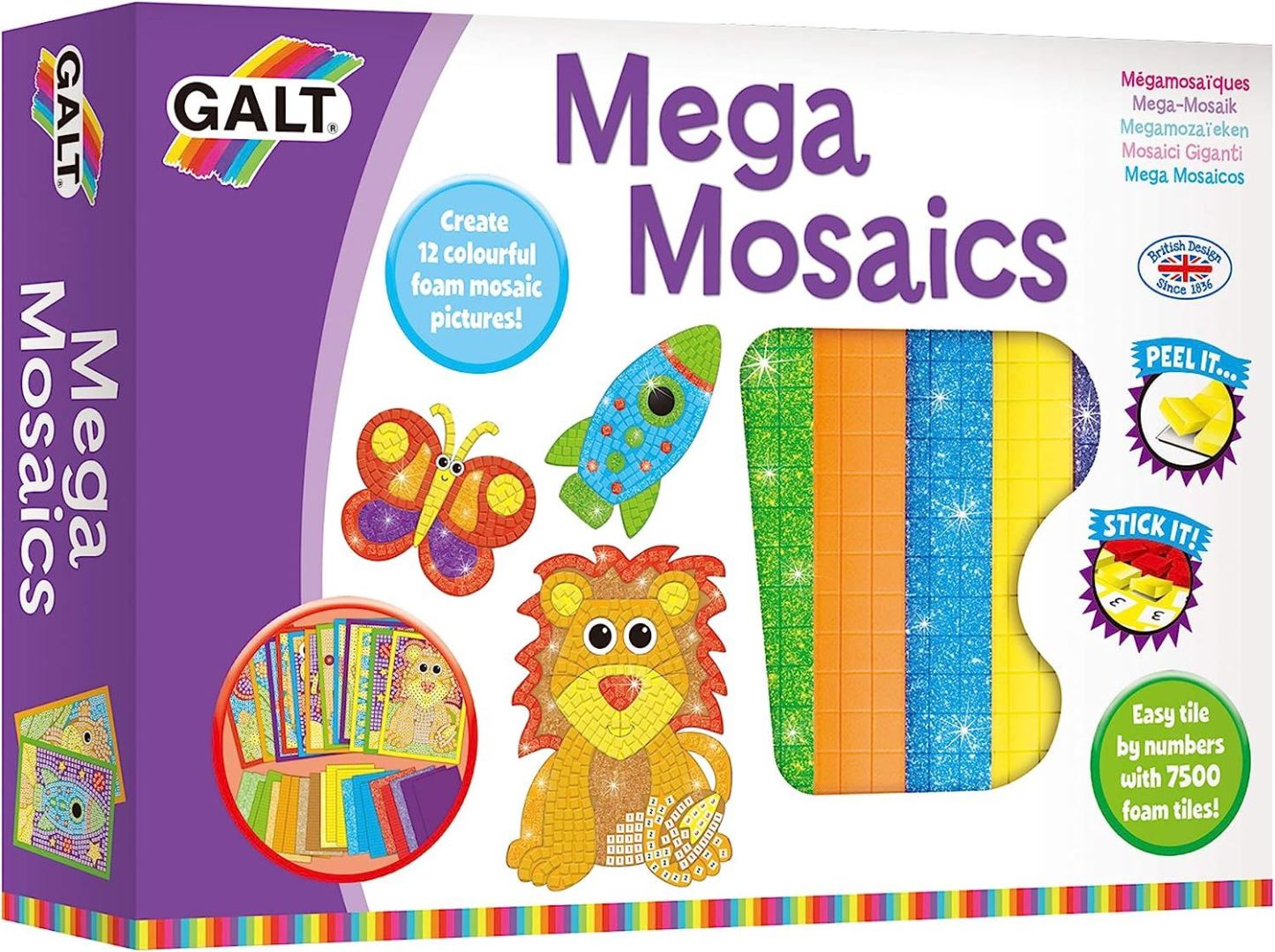Make 12 fun mosaic pictures with colourful foam tiles. Simply tile by number, matching the colour of tile to its number on the picture. Peel the backing off the tiles and stick on the picture to create your mosaic pictures with no glue required.