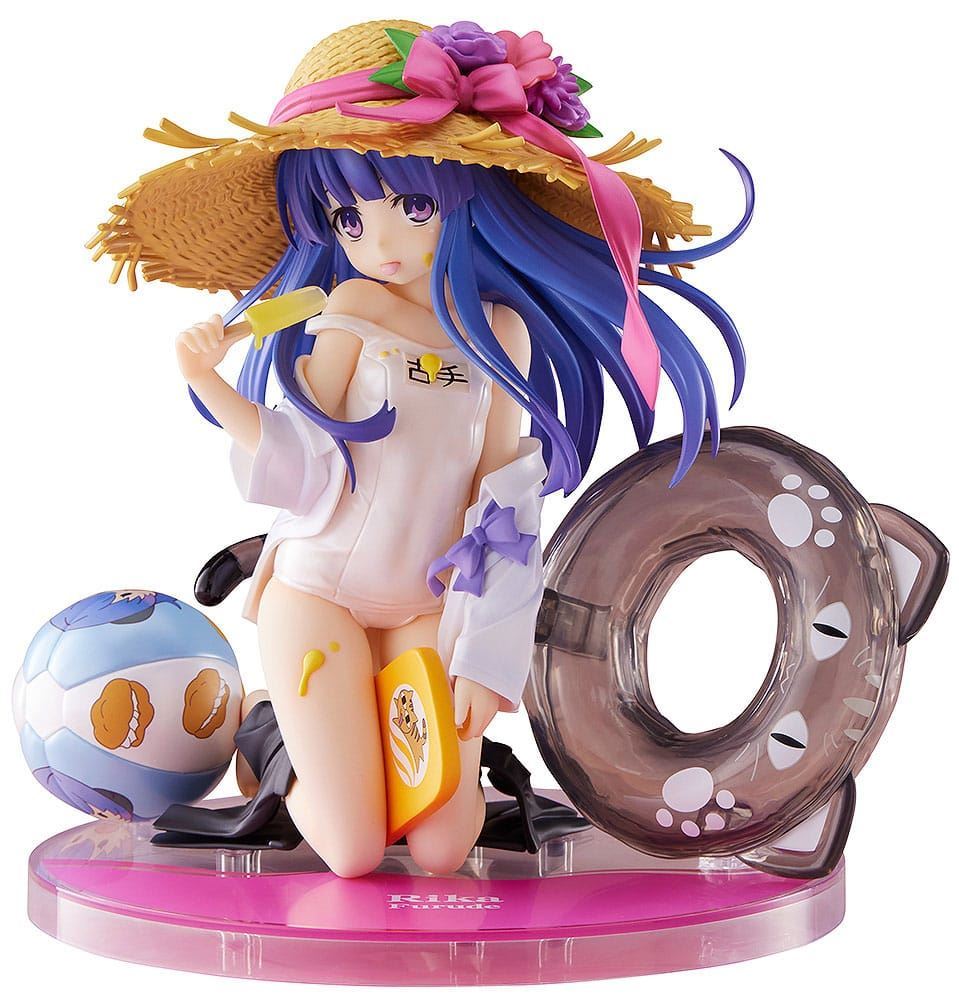 Rika's white school swimsuit and summerlike straw hat work to draw out Rika's cute and mysterious charm. The use of neon colors throughout the figure sets the atmosphere of a pool at night.