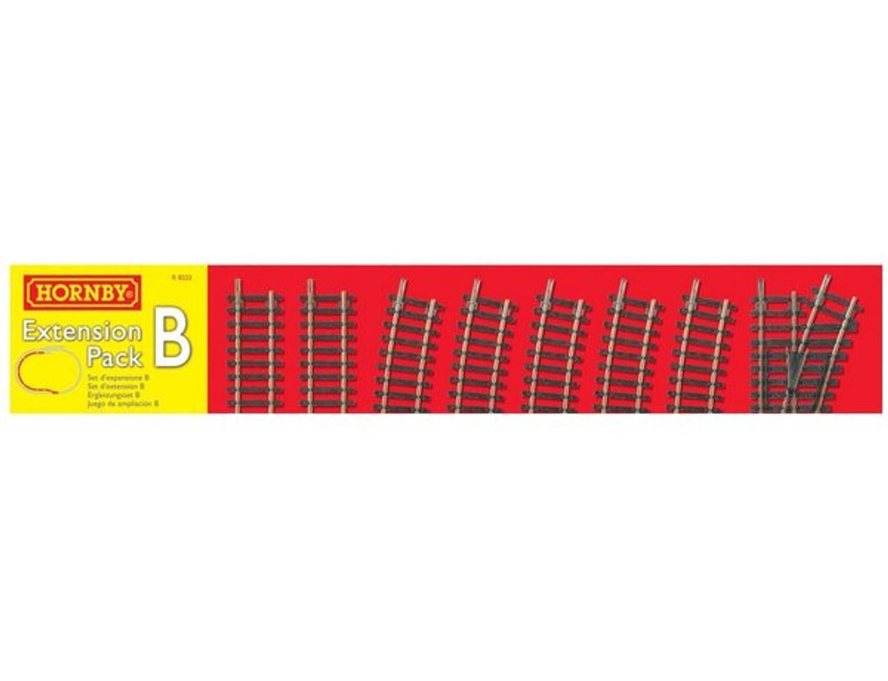 Extend your set in easy steps by adding Track Packs and TrakMat Accessory Packs all the way to the full layout pictured on your TrakMat scenic underlay sheet. Add Extension Pack B to the Starter Oval and Extension Pack A to make this layout.Track Extension Pack B contents: Straight track (R600) x 2; 2nd radius curve track (R606) x 1; Double curve 2nd radius track (R607) x 4; Right hand point (R8073) x 1; Buffer stop (R083) x 1.