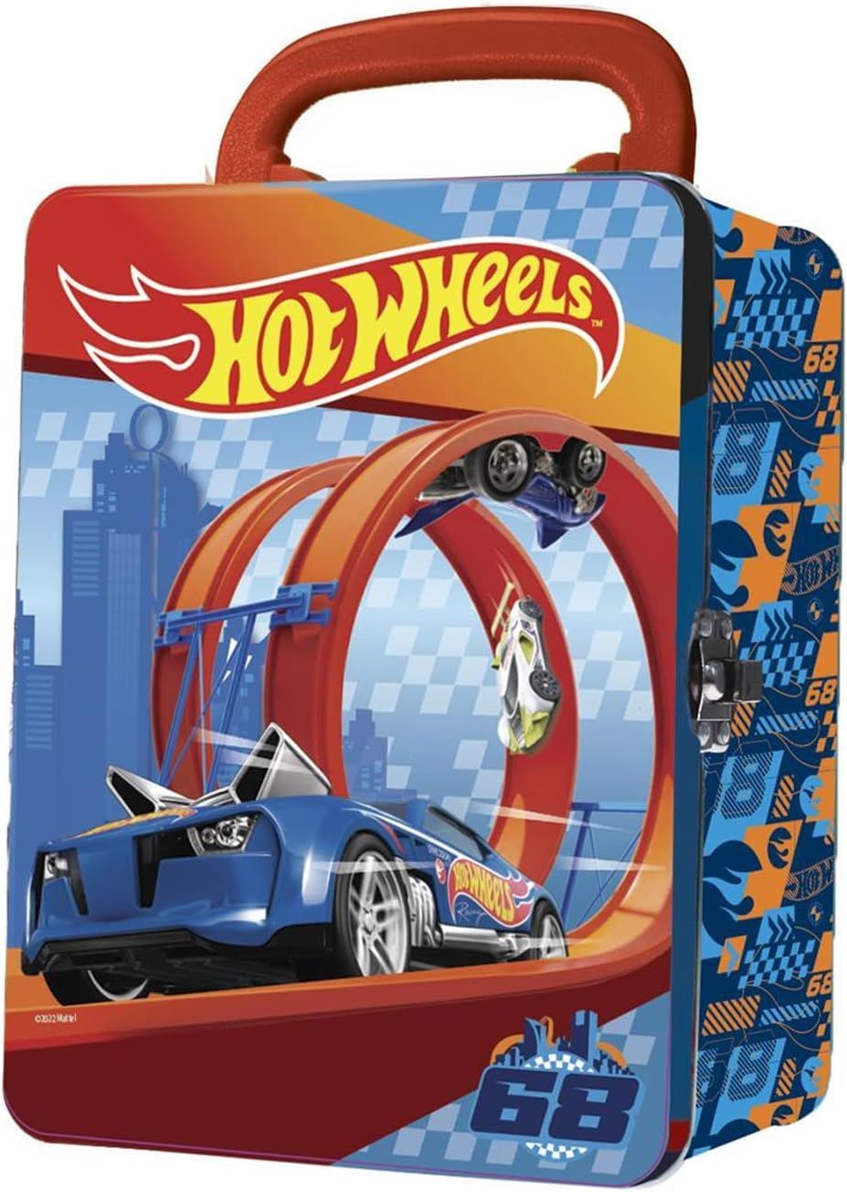 PORTABLE TOY CAR STORAGE: Durable hotwheels metal case protects up to 18 Hot Wheels cars and allows easy transportation and organization of your collection anywhere. PROTECTIVE DESIGN: The metal construction and secure latching lid keep your prized car collections safe from damage whether at home or traveling. CONVENIENT CARRYING: Lightweight design makes it easy for kids to carry their favorite cars collection anywhere for on-the-go play and imagination. HOURS OF ENTERTAINMENT: Great gift for ages 3 and up, this case fuels a young car fanatic's imagination and sparks their interest in vehicles, racing, and creative free play. PERFECT GIFT: This hot wheel car carry case is a one-of-a-kind present for any Hot Wheels fan looking to conveniently show off their prized rides. Cars sold separately. Assembled size is 21 x 15.5 x 8.5 cm.