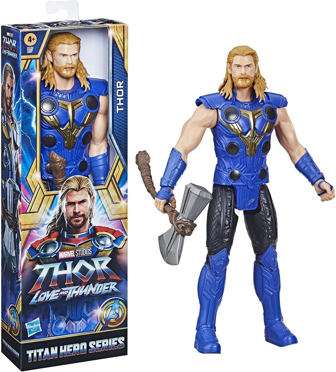 THOR: Thor unleashes the power of Stormbreaker to overcome any foe. 12-INCH-SCALE ACTION FIGURE: Inspired by Thor: Love and Thunder, part of the Marvel Cinematic Universe, this large-scale Thor action figure offers kids ages 4 and up big Marvel imaginary action and adventure. MOVIE-BASED CHARACTER-INSPIRED ACCESSORY: The Titan Hero Series Thor action figure comes with a detachable entertainment-inspired Stormbreaker accessory. POSEABLE ACTION FIGURE: This 12-inch-scale Marvel Avengers Titan Hero Series Thor: Love and Thunder action figure features multiple points of articulation, so boys and girls can pose it for superpowered adventures they imagine. LOOK FOR OTHER MARVEL TITAN HERO FIGURES: Be on the lookout for other Avengers Titan Hero Series figures, inspired by the Marvel Universe (Each sold separately. Subject to availability.)