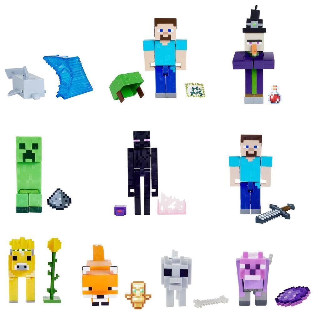 Please note: You will receive one random figure It's time to create, explore and survive with Minecraft characters in 3.25-inch scale! These figures have been authentically created using the video game's signature pixelated design, so they're great for play and display. Movable joints allow iconic characters to strike action poses, and each figure comes with 2 papercraft blocks and an accessory. Great gift for Minecraft fans who love to build in the immersive world of Minecraft. Each sold separately, subject to availability. colours and decorations may vary.