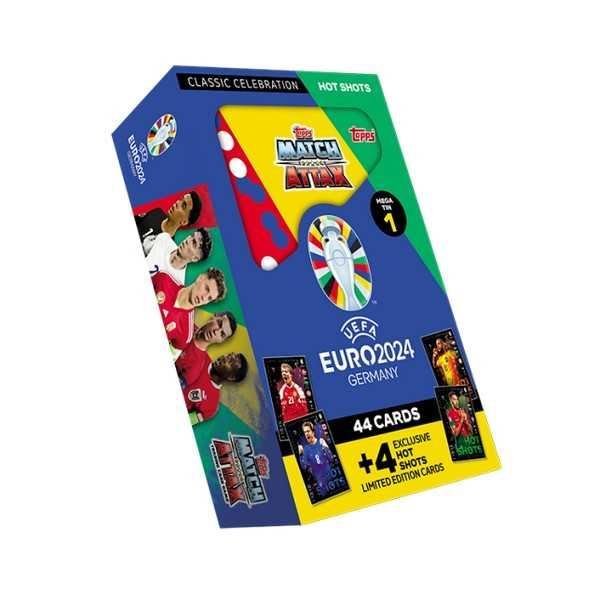 Each Mega Tin contains 44 EURO 2024 Match Attax cards plus exclusive Limited Edition cards. 3 tins to collect.
