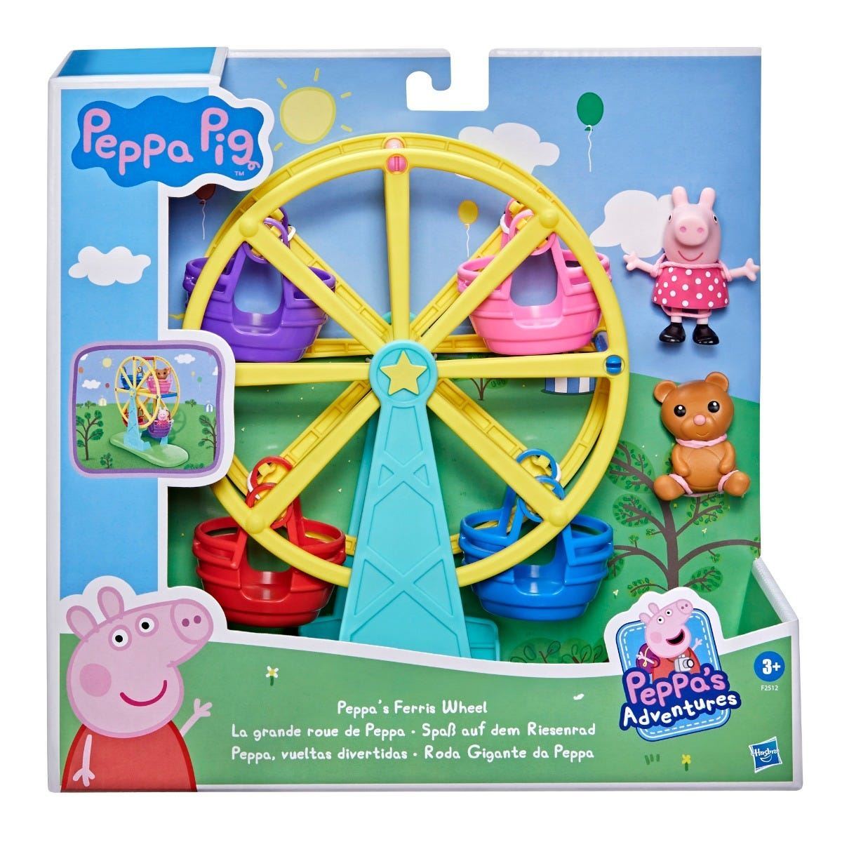 RIDE THE FERRIS WHEEL WITH PEPPA: with the Peppa Pig Peppa�s Ferris Wheel playset, pre-schoolers can imagine all the fun and excitement of a day at the fair with Peppa. INTERACTIVE FERRIS WHEEL RIDE: place the Peppa figure in one of the colourful hanging baskets and spin the Ferris wheel for whirly, twirly fun The manual wheel makes children into ride operators. SPECIAL PEPPA PIG FIGURE AND TEDDY ACCESSORY: articulated Peppa figure wears a special polka-dot dress. Teddy-bear accessory can keep Peppa company as she rides the wheel. GET PEPPA�S FRIENDS IN ON THE FUN: there�s room for friends on the Ferris wheel Look for more 7.5 cm Peppa Pig figures (each sold separately, subject to availability) for more exciting Peppa playtime. AN OINKTASTIC BIRTHDAY OR FESTIVE GIFT: this adorable Peppa Pig toy makes a lovely present for pre-schoolers and Peppa Pig fans aged 3 and up.