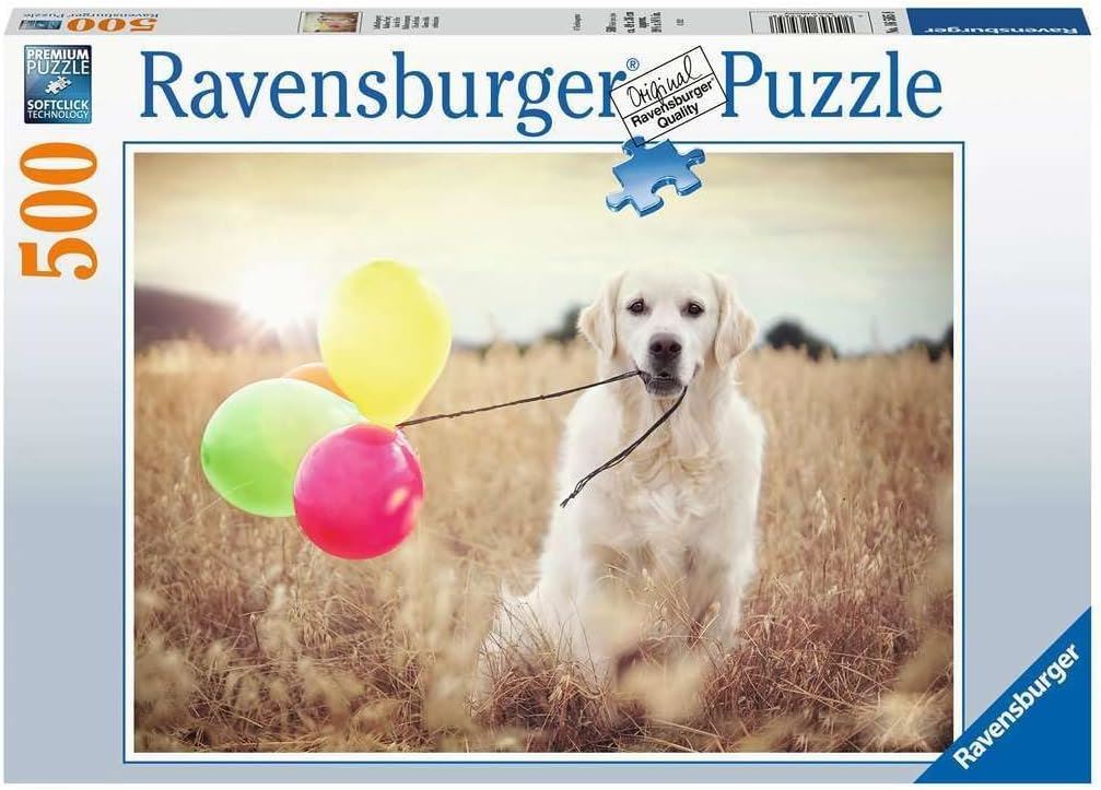 A charming portrait of a creamy-coloured Golden Retriever posing with a bunch of balloons. This handsome chap sits in a field of pale golden oats, and beyond we see the pale tones of an early evening sky. A perfect dog gift [but not for dogs obviously] Bestselling puzzle brand worldwide - With over 1 billion puzzles sold, our jigsaw puzzles make ideal gifts for women, great gifts for men and fit perfectly on our puzzle board Our 500 piece jigsaws are crafted with premium quality and measure 49x36cm when complete. Great for Adults and ideal puzzles for Children 10 years old and up.