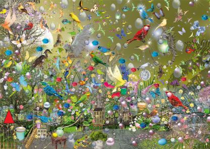It�s a feathered frenzy! This stunning image by renowned artist, Ilona Reny is filled with parrots and birds everywhere the eye can see! A chirpy challenge for any puzzler! Manufactured to Schmidt�s Premium Quality 6 Star-Quality. The 6 unique advantages are: 1. Great variety of forms thanks to individually shaped pieces 2. Perfect cohesion thanks to specially-developed cardboard which is 2.25 mm thick 3. Perfect accuracy of fit thanks to an especially fine punching knife 4. Special matt varnish for jigsaw puzzles without reflections 5. Linen structure 6. Exclusive design Combined, the quality and fit of Schmidt�s six star quality means that a 1000 piece puzzle can be lifted up vertically once complete without the need of any puzzle conserver making this jigsaw a satisfying experience for any puzzle lover. The complete puzzle measures: 693 mm x 493 mm.