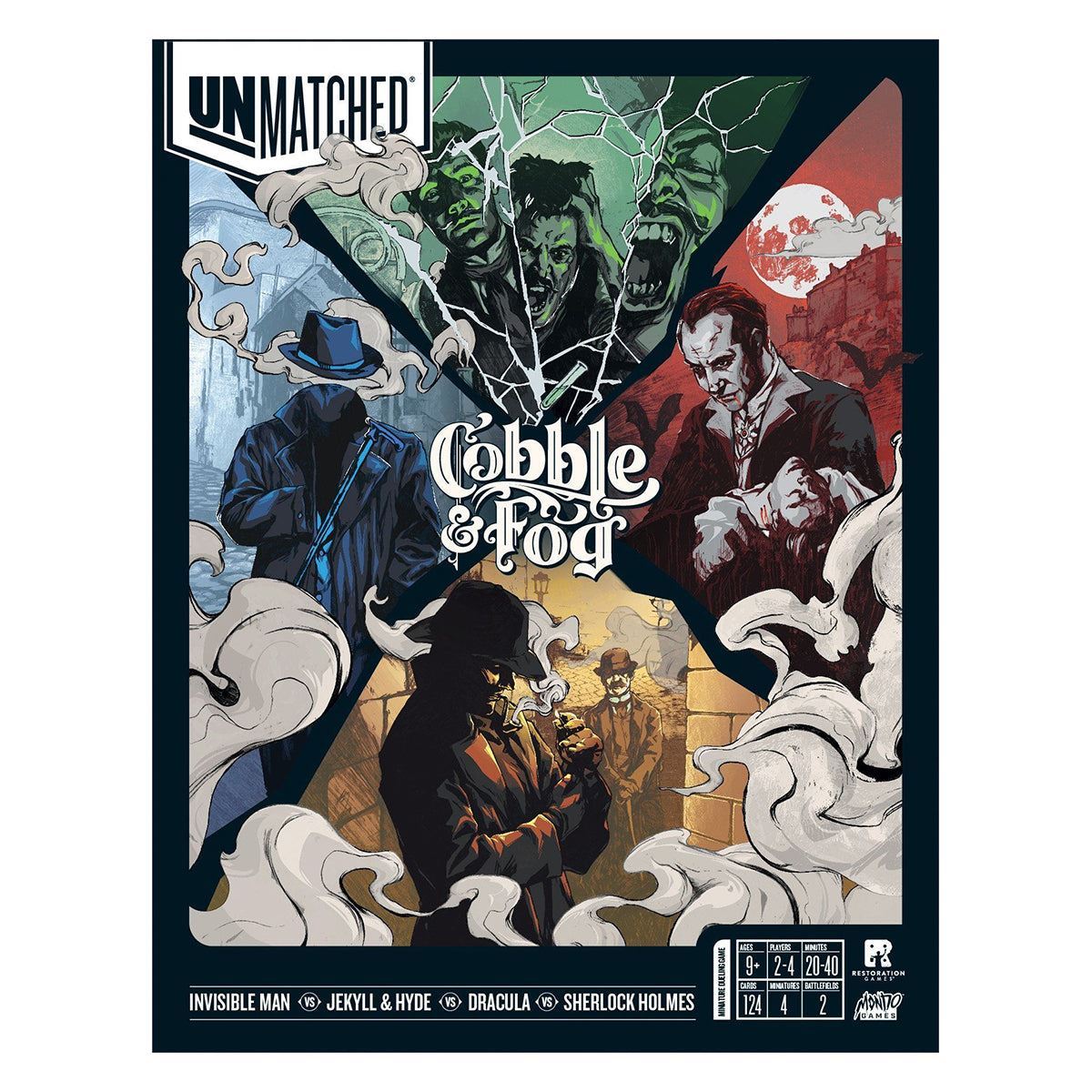 Cobble & Fog is a standalone extension for Unmatched, which will take you to the nooks and crannies of Londons ill-fated Victorian splendor. Sneak up on your enemies with the Invisible Man, anticipate their attacks with the talents of Sherlock Holmes, dr