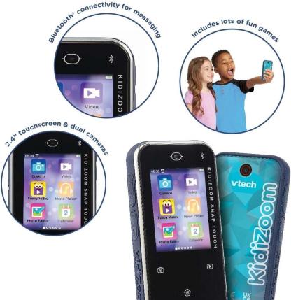 POCKET-SIZE TOUCHSCREEN FUN: Stay connected with this pink pocket-sized touchscreen device, including a dual 5MP camera, games, fun photo and video filters, messaging, voice recording and more! With the KidiZoom Snap Touch, you'll never be short of entertainment! PHOTO AND VIDEO ACTION: With its dual 5MP camera, this toy lets you take photos, selfies and videos, and apply fun photo and video filters! COUNTLESS GAMES AND APPS: This phone toy comes packed with many fun games and apps, as well as a voice recorder, alarm clock and an MP3 Player for listening to your favourite tracks BLUETOOTH MESSAGING AND GAMES: This phone toy has built-in Bluetooth for games, messaging, photos and more between two KidiZoom Snap Touch devices! EASY CHARGING AND MEMORY EXPANSION: This phone camera toy is easy to recharge with its USB port and allows for expanded memory capacity through a memory card slot IDEAL GIFT FOR CHILDREN: Providing hours of educational excitement and interactive fun, this phone toy is the perfect birthday gift, Easter or Christmas present for boys and girls aged 6+ years