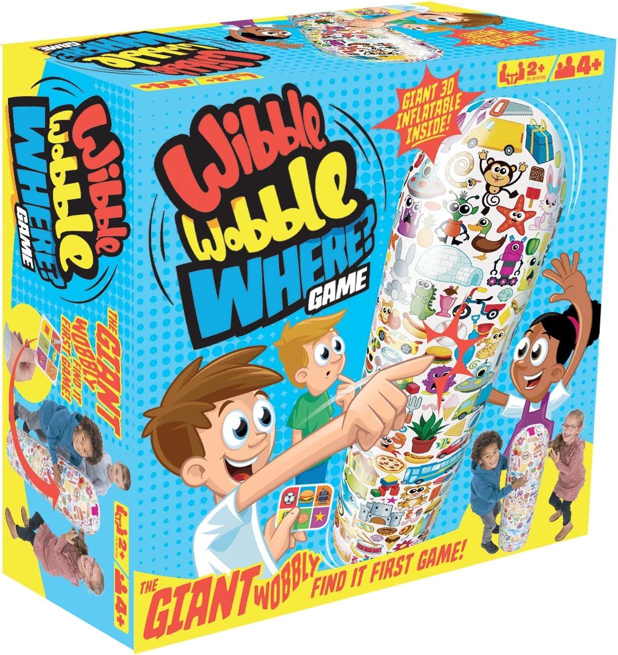 Wibble Wobble Where is the giant wobbly find-it-first game where players race to find objects hidden in plain sight. Spin a colour, pick up a card and spin again to see who??l join in the round: head-to-head, all play, or solo against the clock. The giant inflatable leans and sways with every touch as you try to match the item on the card. There are around 300 there: spot it and you get to keep the card. First to collect three cards wins.